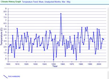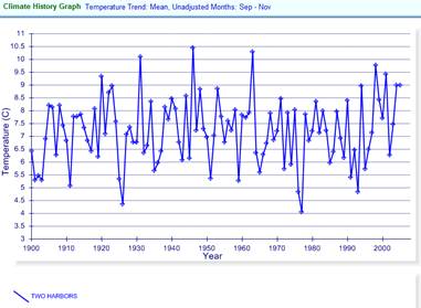 The following graphs show the average spring (left) and fall temperatures (right) for Two Harbors. Perhaps these types of articles are not being so honest.