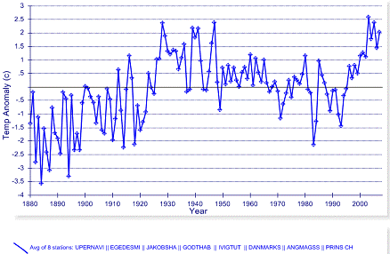 A 2006 paper “Greenland warming of 1920-1930 and 1995-2005” by P. Chylek, M. K. Dubey, and G. Lesins (of Los Alamos National Laboratory, Space and Remote Sensing Sciences, and Department of Physics and Atmospheric Science, Dalhousie University -- published in Geophysical Research Letters 33) [http://www.agu.org/pubs/crossref/2006/2006GL026510.shtml ] provided the following conclusions: “Although there has been a considerable temperature increase during the last decade (1995 to 2005) a similar increase and at a faster rate occurred during the early part of the 20th century (1920 to 1930) when carbon dioxide or other greenhouse gases could not be a cause. The Greenland warming of 1920 to 1930 demonstrates that a high concentration of carbon dioxide and other greenhouse gases is not a necessary condition for period of warming to arise. The observed 1995-2005 temperature increase seems to be within a natural variability of Greenland climate. A general increase in solar activity [Scafetta and West, 2006] since 1990s can be a contributing factor as well as the sea surface temperature changes of tropical ocean [Hoerling et al., 2001]… To summarize, we find no direct evidence to support the claims that the Greenland ice sheet is melting due to increased temperature caused by increased atmospheric concentration of carbon dioxide. The rate of warming from 1995 to 2005 was in fact lower than the warming that occurred from 1920 to 1930.”