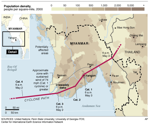 The following figure, from the MSNBC article shows the path of the tropical cyclone.