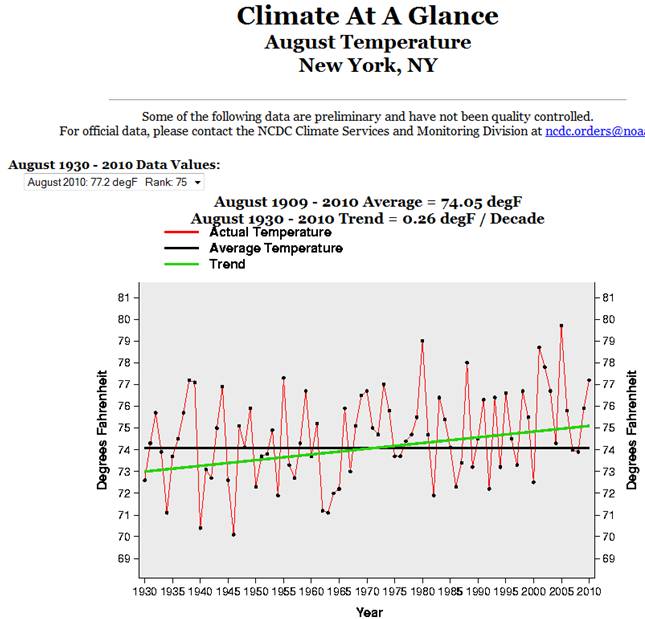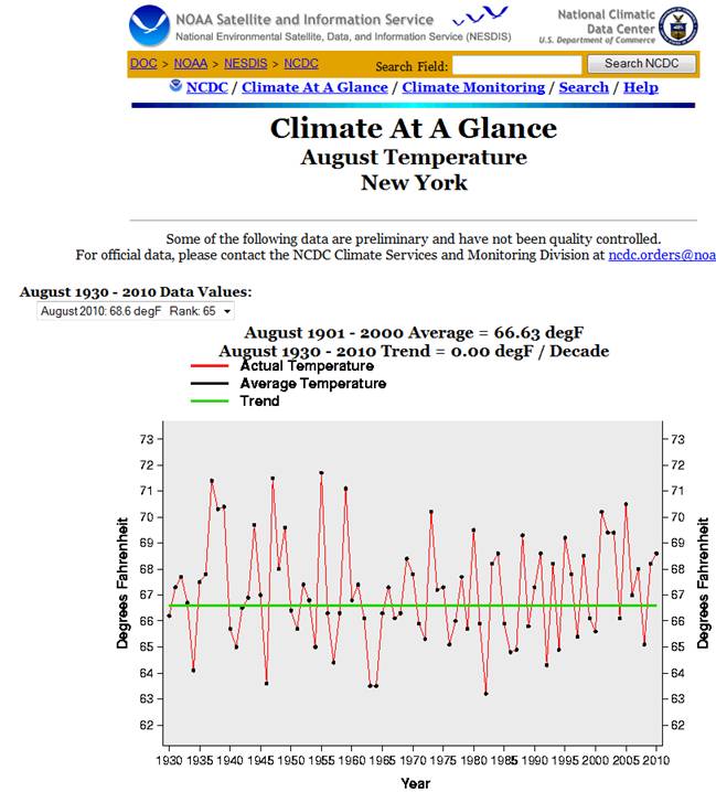 For the last 80 years (including the hot August of 2010), the NY State trend is zero.