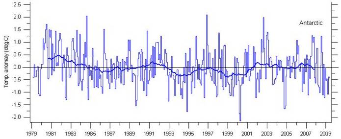 The following figure shows the satellite-based temperature anomalies for the South Pole.