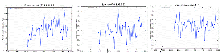 Unlike the northern hemisphere, temperature measurements in Antarctica only started in the 1950’s, and there are very few stations covering the 50-year period to the present.