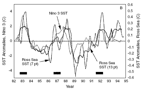 Figure: Correlation of El Nino Region SST with Ross Sea SST
