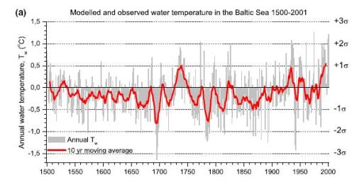 http://www.springerlink.com/content/38218106v2gwq380/] provides reconstruction of sea temperatures and sea ice. The authors state: “It appears that the late twentieth century warming in the Baltic Sea region cannot be determined to be unprecedented over the past 500 years, as the mid-eighteenth century warming is of comparable magnitude.”