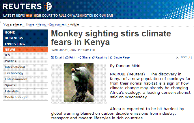 There appears to be a disconnect between Western ideas of CO2 and the reality of the effects of deforestation. The monkeys’ normal habitat is being destroyed by deforestation.