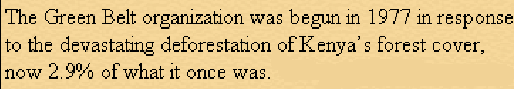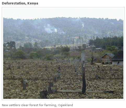 Kenya’s annual deforestation rate for 1990 – 2005: 12,000 ha / year (total remaining forest: 3.5 million ha).