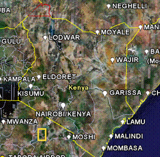 Deforestation: Kenya / Tanzania Border area (the brown areas were all formerly forested area – except the upper part of Mt Kilimanjaro)