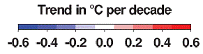 The IPCC calculates average temperatures based on the average temperatures in 5x5 degree grid “squares”. The IPCC AR4 (Figure 9.6, 2007) shows the following trend maps. The following temperature charts are from the GHCN database.