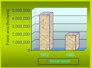 The following figure is from [http://www.rippleafrica.org/ripple_funding_trees_update2007.htm], which states: “Deforestation in Malawi, Africa, is a major problem, and 30% of the forests have disappeared in the last 10 years. Deforestation is happening very quickly on a frightening scale, and there is tremendous pressure on the natural resources because of the burgeoning population.”