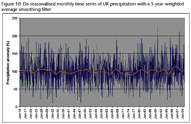 The next figure shows precipitation data from the same Met Office report – exhibiting no trend.