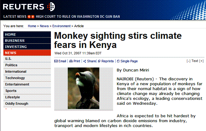 There appears to be a disconnect between Western ideas of CO2 and the reality of the effects of deforestation. The monkeys’ normal habitat is being destroyed by deforestation. A large rural population with a large growth rate is dependent on burning charcoal for fuel and subsistence agriculture to survive.