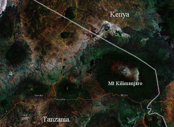 Deforestation: Kenya / Tanzania Border area (the brown areas were all formerly forested area – except the upper part of Mt Kilimanjaro)