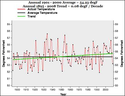 The following figure shows the annual average temperature in Kansas since 1895 [http://www.ncdc.noaa.gov/oa/climate/research/cag3/ks.html]