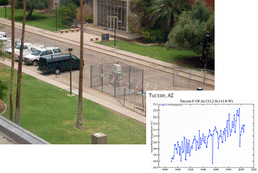 The following two figures compare an urban parking lot based station (Tucson, AZ) and the closest rural station (Tombstone, AZ).
