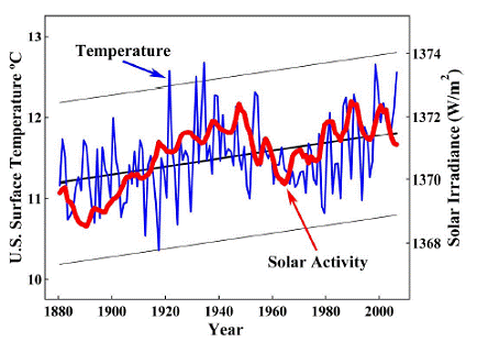 The National Ocean and Atmospheric Administration (NOAA) web page called “The Sun-Climate Connection” states: “Many scientists find that these correlations are convincing evidence that the sun has contributed to the global warming of the 20th century” [Ref 17]. The following figure is from that article.