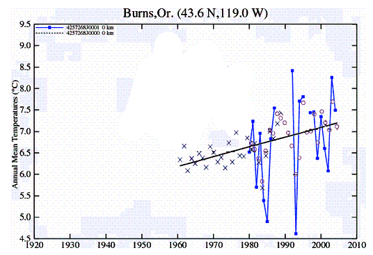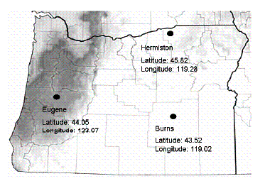 Figure 3: Combined Data for Burns (Fig. 5 in paper) Figure 4: Combined Data for Eugene (Fig. 6 in paper)