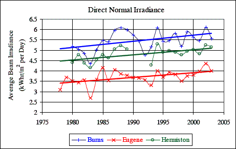irradiance at three sites in Oregon. (“Trends In Direct Normal Solar
