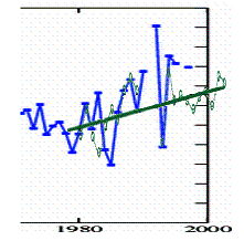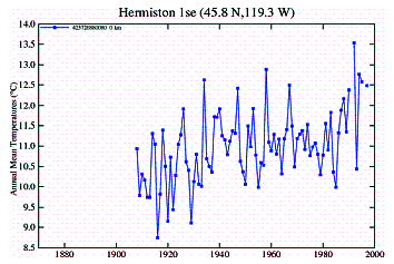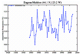 I went to the NASA GISS temperature station database and plotted the available data for the nearest station at each study location [http://data.giss.nasa.gov/gistemp/station_data/]. The historical temperature trends are shown below.
