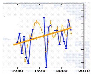 Superimposing the two figures provides the following figure. The solar matches the temperature but the models based on solar do not.